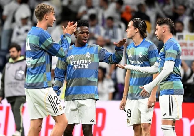 比赛开始前,当维尼修斯出现在场边热身时,看台上已响起阵阵掌声。真正的高潮出现在首发名单公布时。当主持人念到:“7号……维尼修斯……” 短暂的停顿后,全场爆发出整齐划一的呼喊:“儒尼奥尔!”(维尼修斯的昵称)。这声回应气势如虹,席卷了整个球场。
